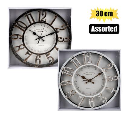 Clock wall pl antique 30cm asstd