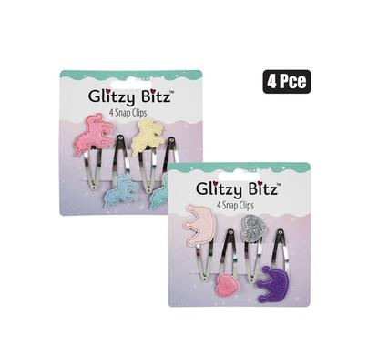 Hair clip 4pc heart & crowns snap-on