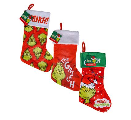 Xmas stocking grinch 45cm 3 asstd